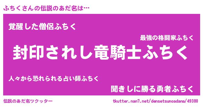 | 男性向けラノベタイトル風あだ名 | 『この素晴らしい世界にふちくを!』 |