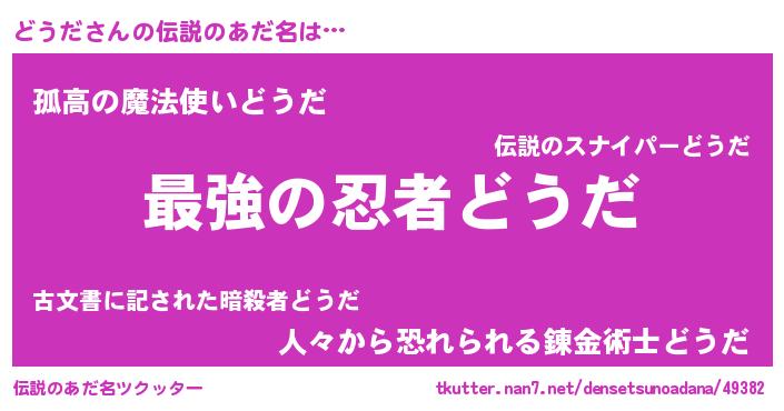 | ヒーロー風カッコイイあだ名 | 『ウルトラどうだマン』『暗黒騎士ドウ』 |