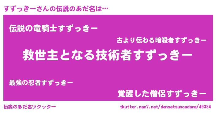 | 男性向けラノベタイトル風あだ名 | 『うちのすずっきーが世界を掌握している!』 |