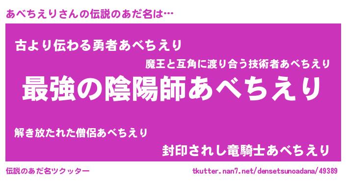 | 意味不明あだ名 | 『あべちえりフォーエバー』 |
