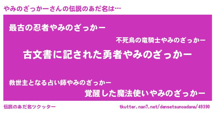 | 胡散臭い通販商品みたいなあだ名 | 『前代未聞の水素水…その名も「やみのざっかー」』 |