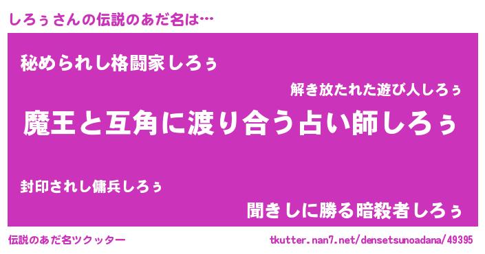 | 女子向けラノベタイトル風あだ名 | 『闇のしろぅ』『しろぅ恋絵巻』 |