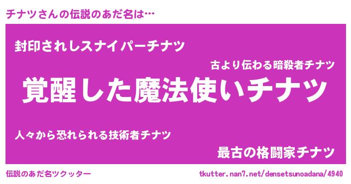 | ポケモン風あだ名 | 『ヒチナツ』『チナチュウ』 |