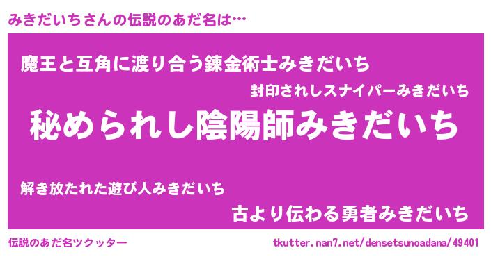 | ファンタジー風あだ名 | 『エターナルミキダイチー』『ミキフェル』 |