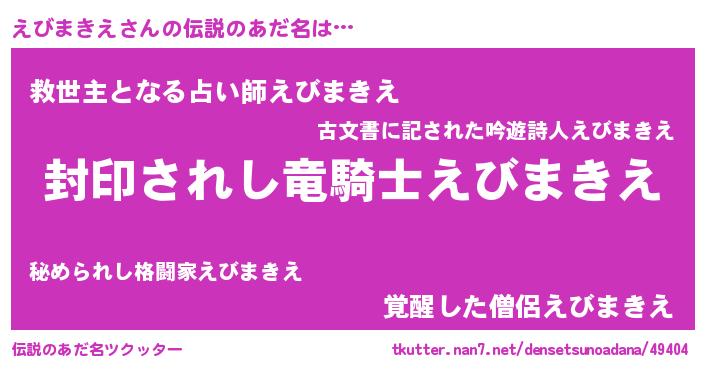 | ヒーロー風カッコイイあだ名 | 『スーパーエビマキエ』『幻影騎士エビ』 |