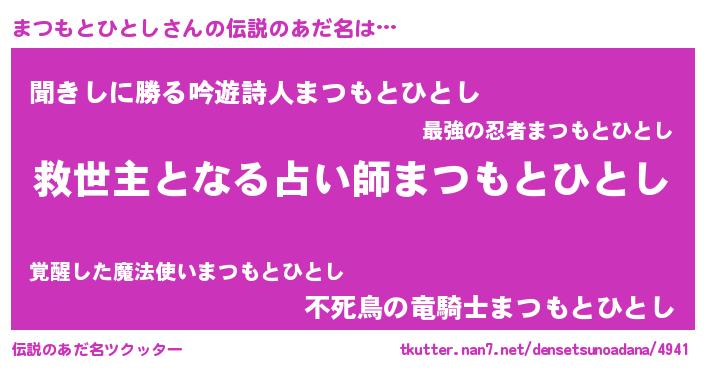 | 意味不明あだ名 | 『自称まつもとひとし』 |