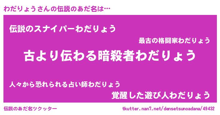 | 意味不明あだ名 | 『永久保存わだりょう』『自称わだりょう』 |