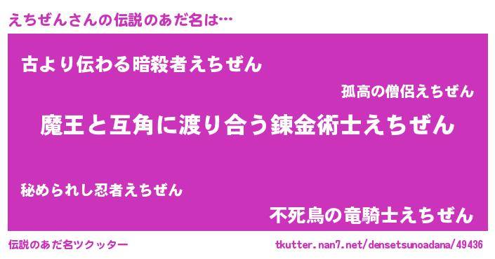 | 男性向けラノベタイトル風あだ名 | 『転生したらえちぜんだった件』 |