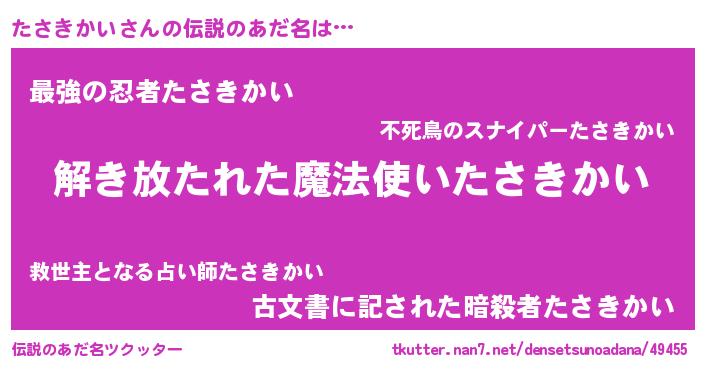 | ヒーロー風カッコイイあだ名 | 『幻影騎士タサ』『ネオタサキカイ』 |