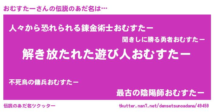 | ヒーロー風カッコイイあだ名 | 『幻影騎士オム』『友情の使者おむすたー』 |