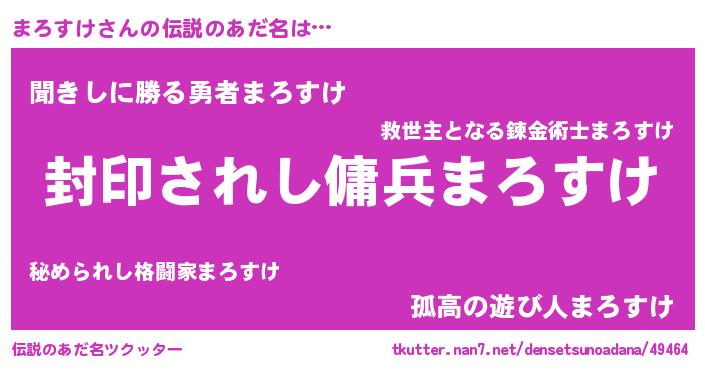 | 女子向けラノベタイトル風あだ名 | 『まろすけストレイドッグス』 |