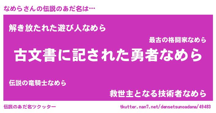 | ヒーロー風カッコイイあだ名 | 『ネオナメラ』『銀牙騎士ナメ』 |