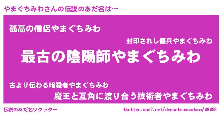 | 意味不明あだ名 | 『やまぐちみわフォーエバー』 |