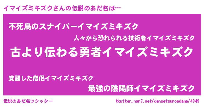 | 意味不明あだ名 | 『永久保存イマイズミキズク』 |