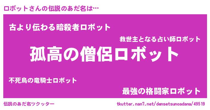 | ヒーロー風カッコイイあだ名 | 『黄金騎士ロボ』『ネオロボット』 |