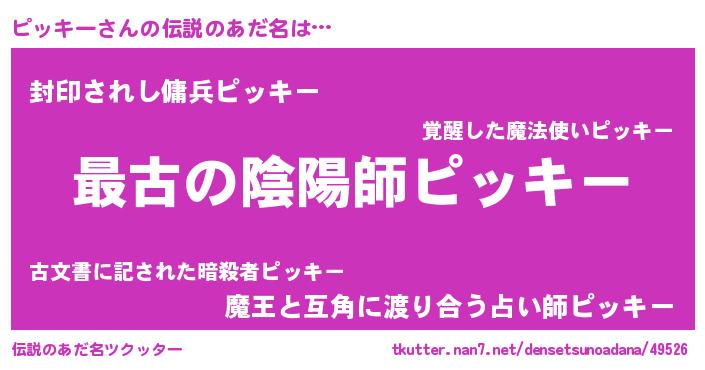 | 意味不明あだ名 | 『住所不定無職ピッキー(95歳)』 |