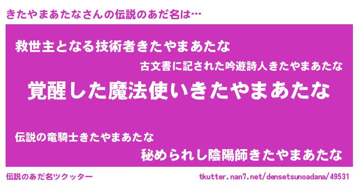 | 意味不明あだ名 | 『とにかく怪しいきたやまあたな』 |