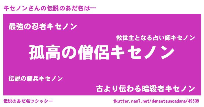 | ヒーロー風カッコイイあだ名 | 『仮面キセダー』『天弓騎士キセ』 |