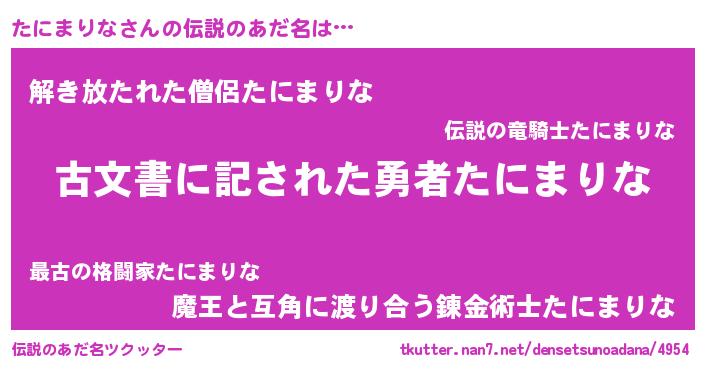 | ヒーロー風カッコイイあだ名 | 『ネオタニマリナ』『魔戒騎士タニ』 |
