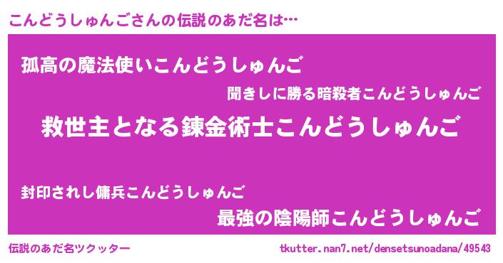 | 男性向けラノベタイトル風あだ名 | 『ノーゲーム・ノーコンドウシュンゴ』 |