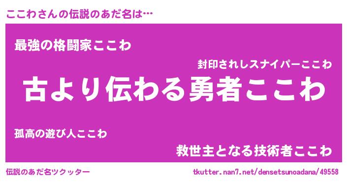 | 男性向けラノベタイトル風あだ名 | 『この素晴らしい世界にここわを!』 |