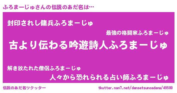 | 男性向けラノベタイトル風あだ名 | 『魔弾の王とふろまーじゅ』 |