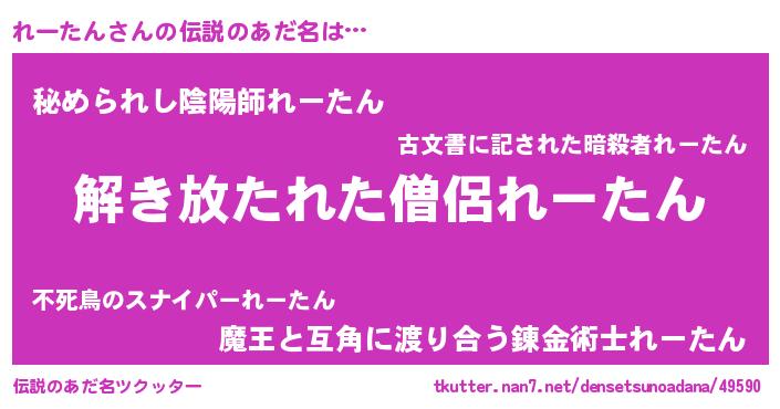 | 男性向けラノベタイトル風あだ名 | 『れーたんの嫁は女の子じゃないと思った?』 |