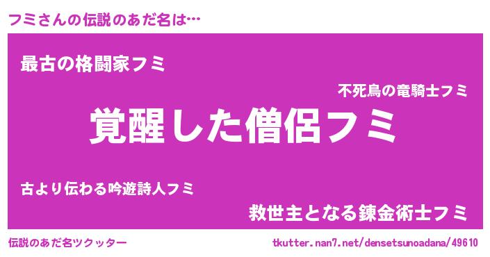 | ヒーロー風カッコイイあだ名 | 『幻影騎士フミ』『サイバー戦士フミ』 |