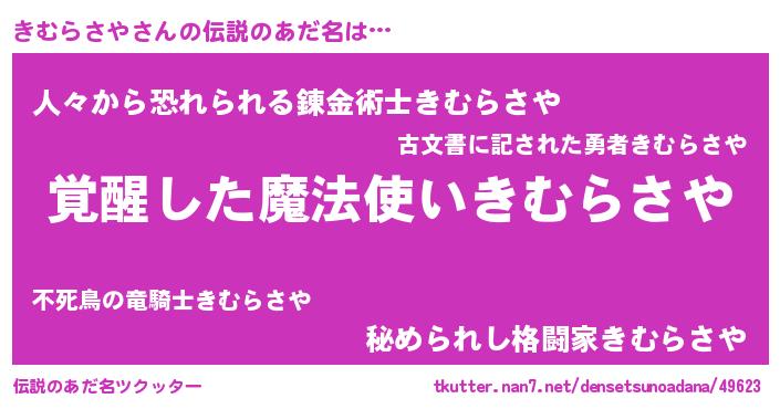 | 女子向けラノベタイトル風あだ名 | 『きむらさやの玉の輿計画!』 |