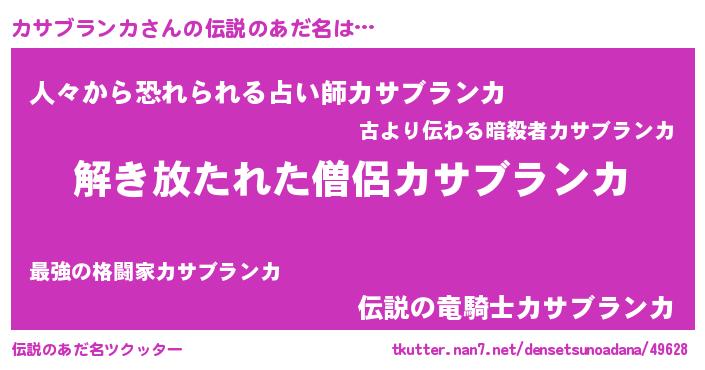 | 男性向けラノベタイトル風あだ名 | 『この素晴らしい世界にカサブランカを!』 |