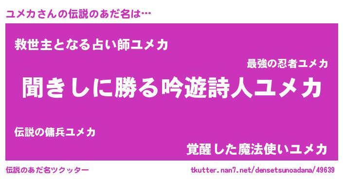 | 意味不明あだ名 | 『永久保存ユメカ』『自称ユメカ』 |