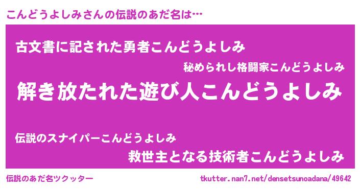 | 意味不明あだ名 | 『とにかく怪しいこんどうよしみ』 |