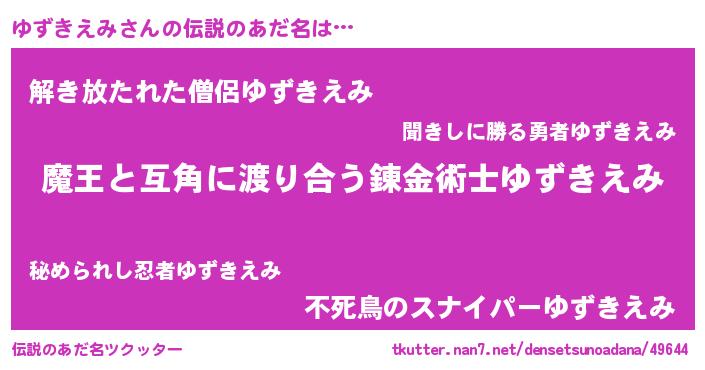 | 女子向けラノベタイトル風あだ名 | 『ゆずきえみ恋絵巻』 |