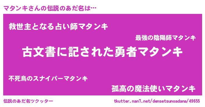 | 意味不明あだ名 | 『永久保存マタンキ』『自称マタンキ』 |