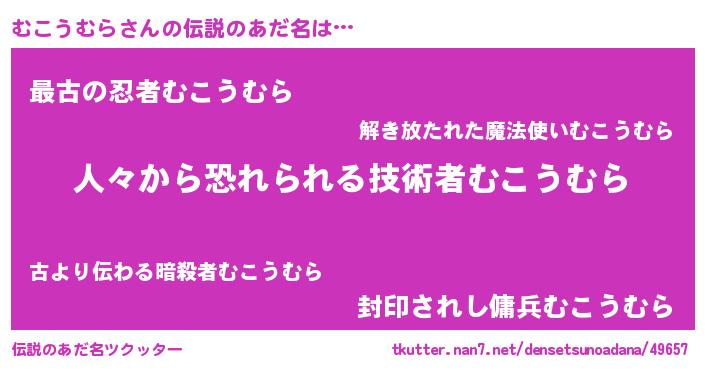 | ヒーロー風カッコイイあだ名 | 『正義の使者むこうむら』『仮面ムコダー』 |