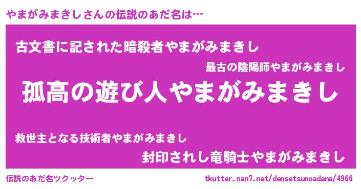 | 胡散臭い通販商品みたいなあだ名 | 『信頼と実績のペンダント…その名も「やまがみまきし」』 |