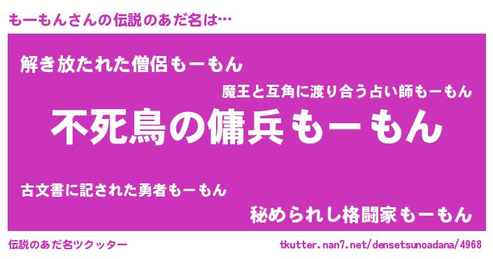 | 胡散臭い通販商品みたいなあだ名 | 『モテモテ間違いなし水晶球…その名も「もーもん」』 |