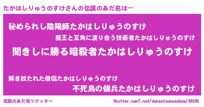 | 意味不明あだ名 | 『住所不定無職たかはしりゅうのすけ(68歳)』 |