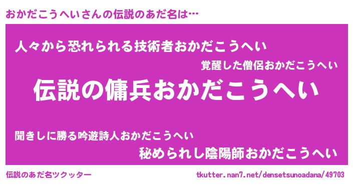 女子向けラノベタイトル風あだ名 | 『(仮)おかだこうへいのやんごとなき事情』 |