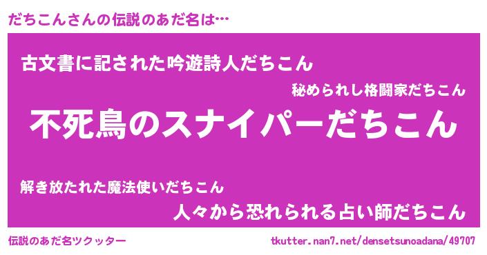 | 女子向けラノベタイトル風あだ名 | 『だちこん姫と円卓の騎士』 |