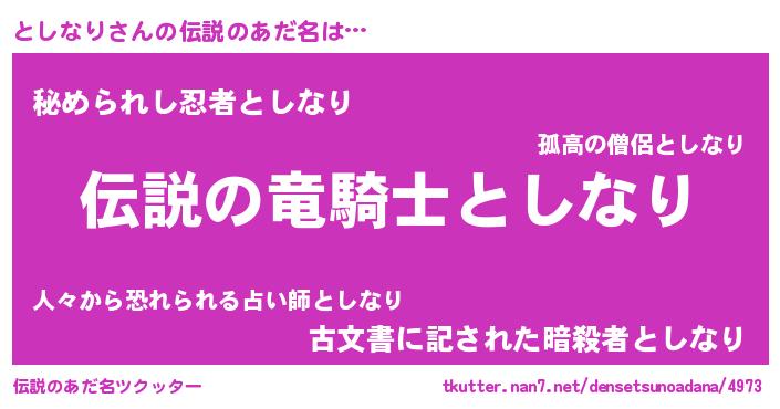 | 胡散臭い通販商品みたいなあだ名 | 『必ず成功するブレスレット…その名も「としなり」』 |