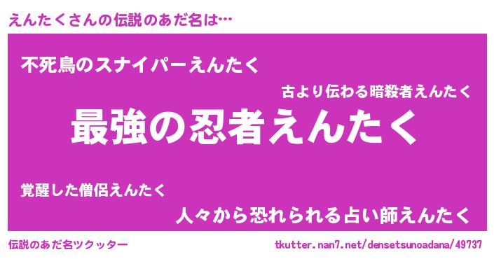 | 意味不明あだ名 | 『えんたくフォーエバー』『自称えんたく』 |