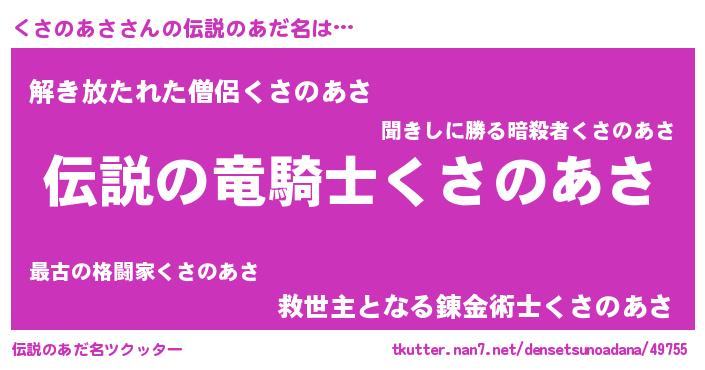 | ヒーロー風カッコイイあだ名 | 『スーパークサノアサ』『暗黒騎士クサ』 |
