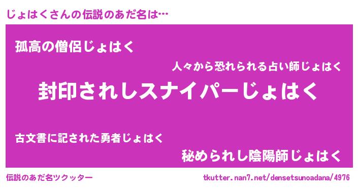 | ヒーロー風カッコイイあだ名 | 『スーパージョハク』『幻影騎士ジョ』 |