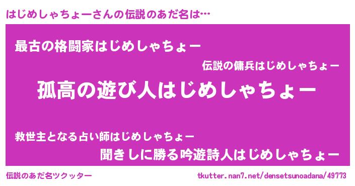 | ヒーロー風カッコイイあだ名 | 『黄金騎士ハジ』『ネオハジメシャチョー』 |