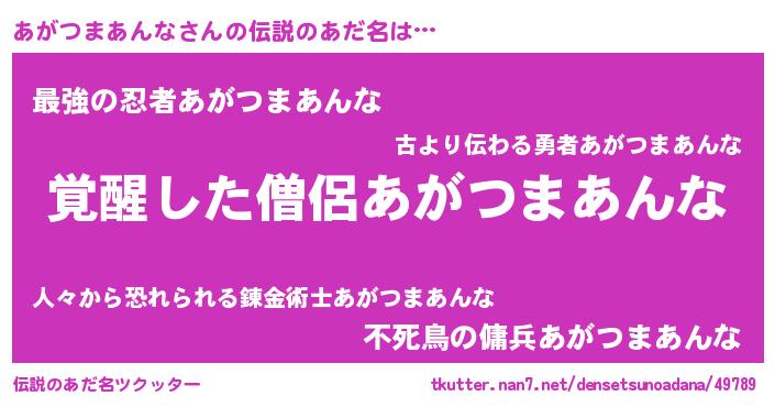 | 意味不明あだ名 | 『とにかく怪しいあがつまあんな』 |