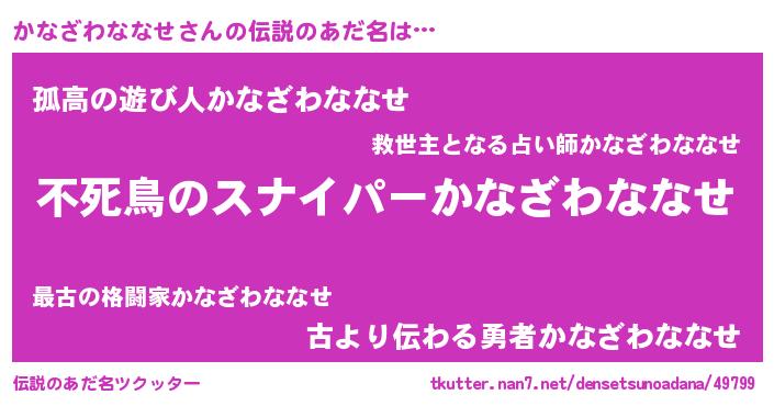 | ヒーロー風カッコイイあだ名 | 『スーパーカナザワナナセ』 |