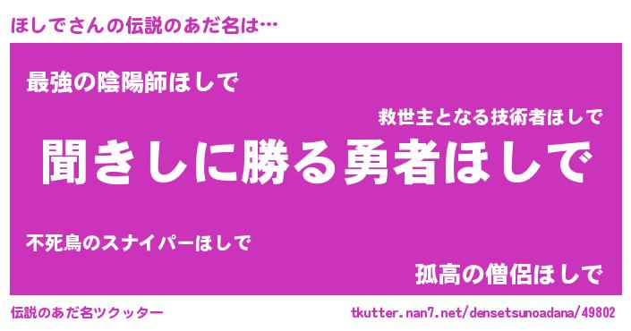 | 胡散臭い通販商品みたいなあだ名 | 『絶対に幸福をもたらす水素水…その名も「ほしで」』 |