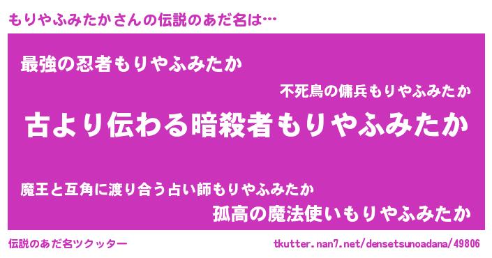 | 意味不明あだ名 | 『住所不定無職もりやふみたか(65歳)』 |