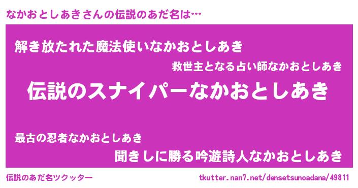 | ヒーロー風カッコイイあだ名 | 『スーパーナカオトシアキ』 |